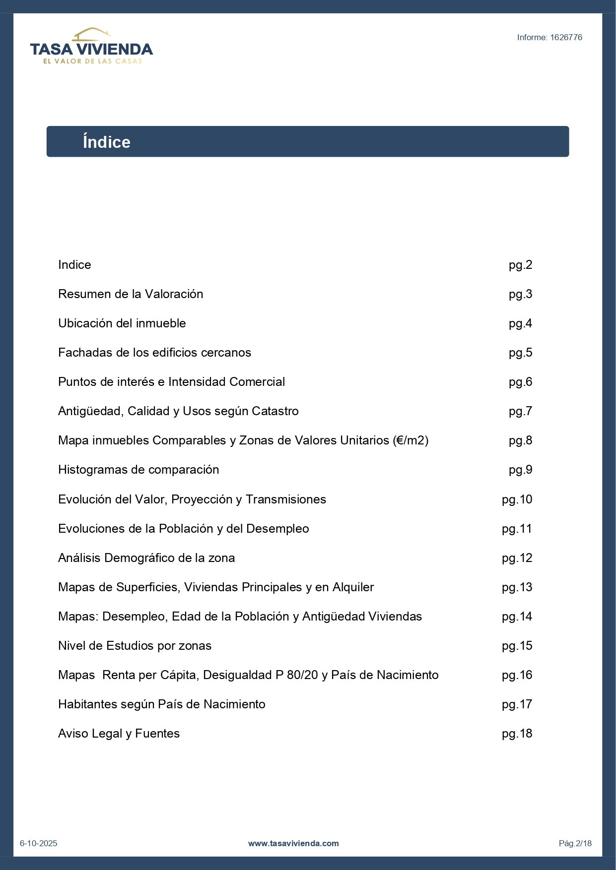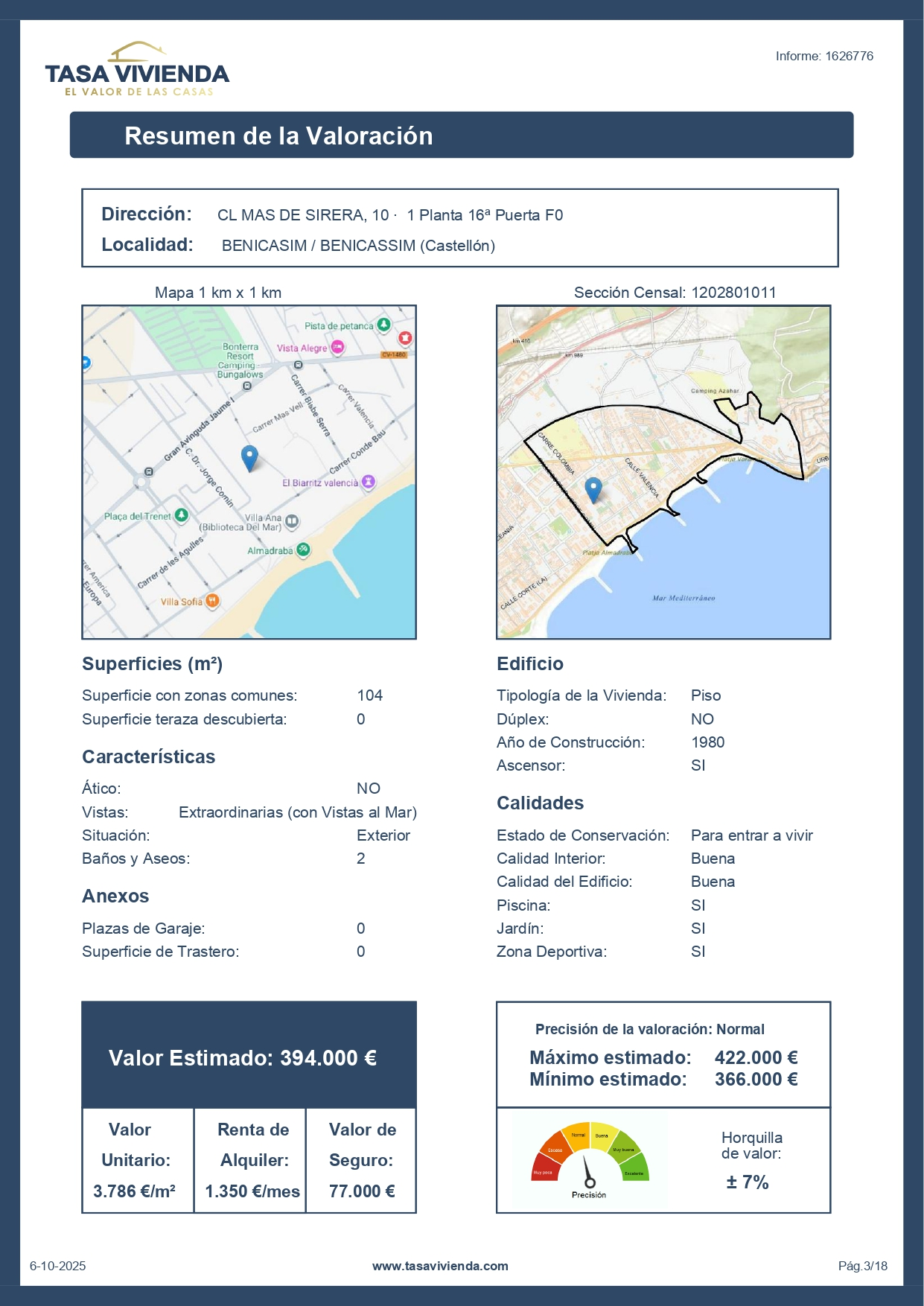Tasa Vivienda ofrece el mejor informe del mercado que incluye: